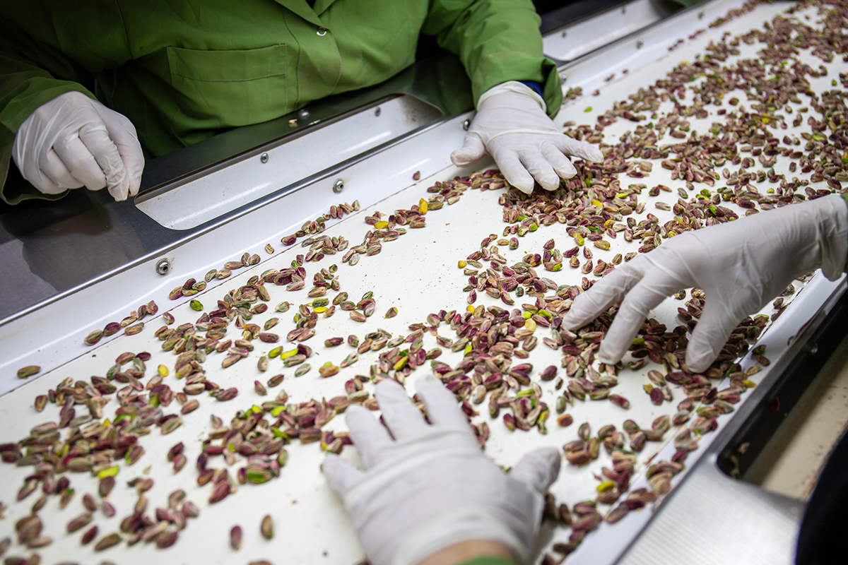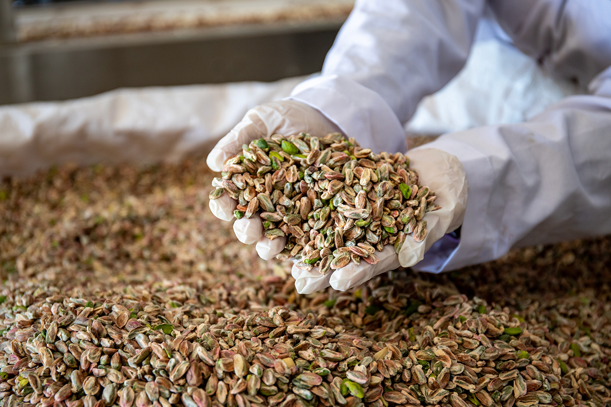 Produzione Specifica per il Vostro Prodotto: Dal "Perfetti Green" al "Red". Nel nostro stabilimento integrato, trasformiamo la materia prima in soluzioni dedicate alle vostre esigenze industriali. Dalla pregiata serie "Perfetti Green" alle varietà "Mawardi" e "Red"; produciamo ogni qualità. Che si tratti di farina impalpabile, granella calibrata (1-3mm, 3-7mm) o pistacchi interi; lavoriamo il prodotto con la precisa granulometria e tostatura necessaria per il vostro prodotto finale. La vostra specifica tecnica è il nostro standard di produzione.